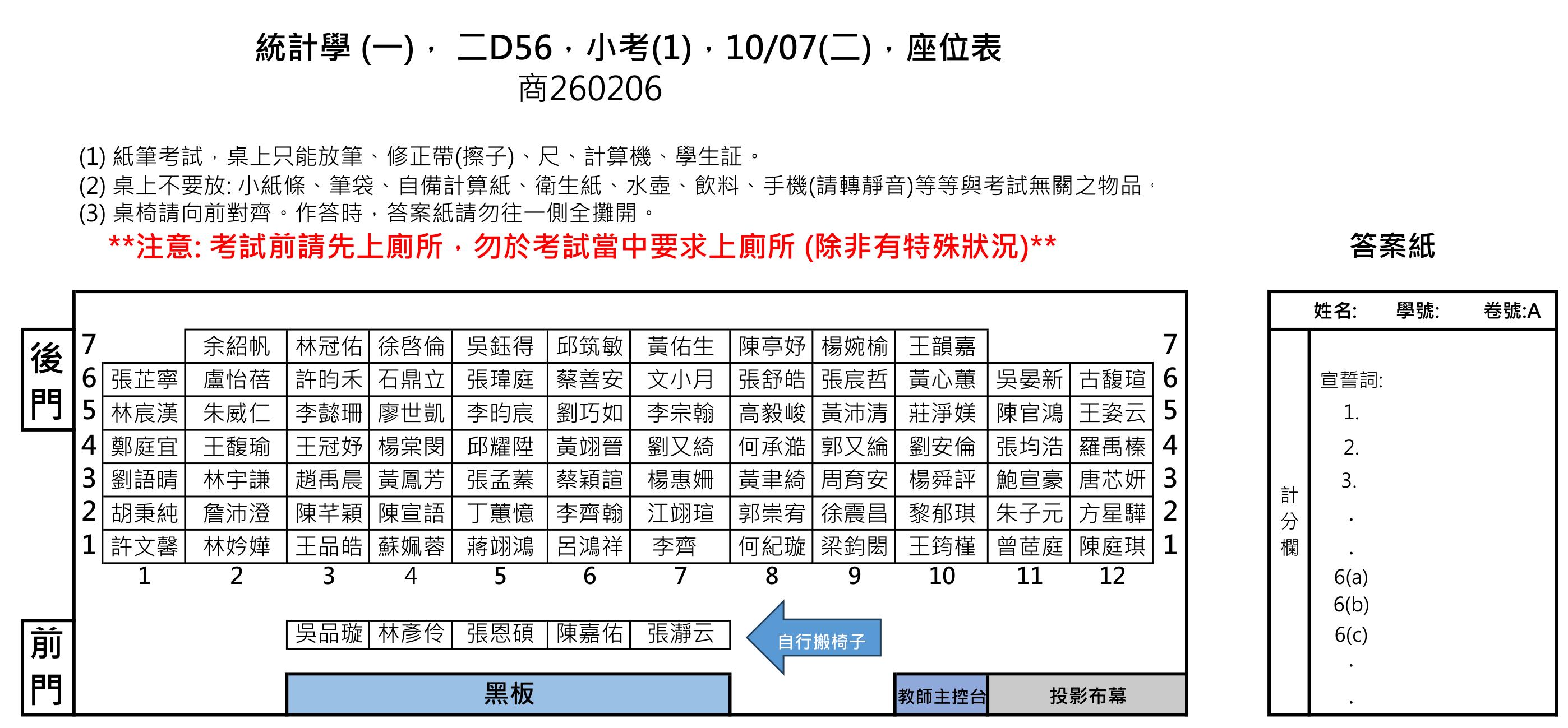 考試範圍:1.1~5.5 (原則上是依上述座位表入座)