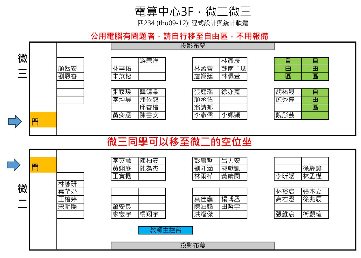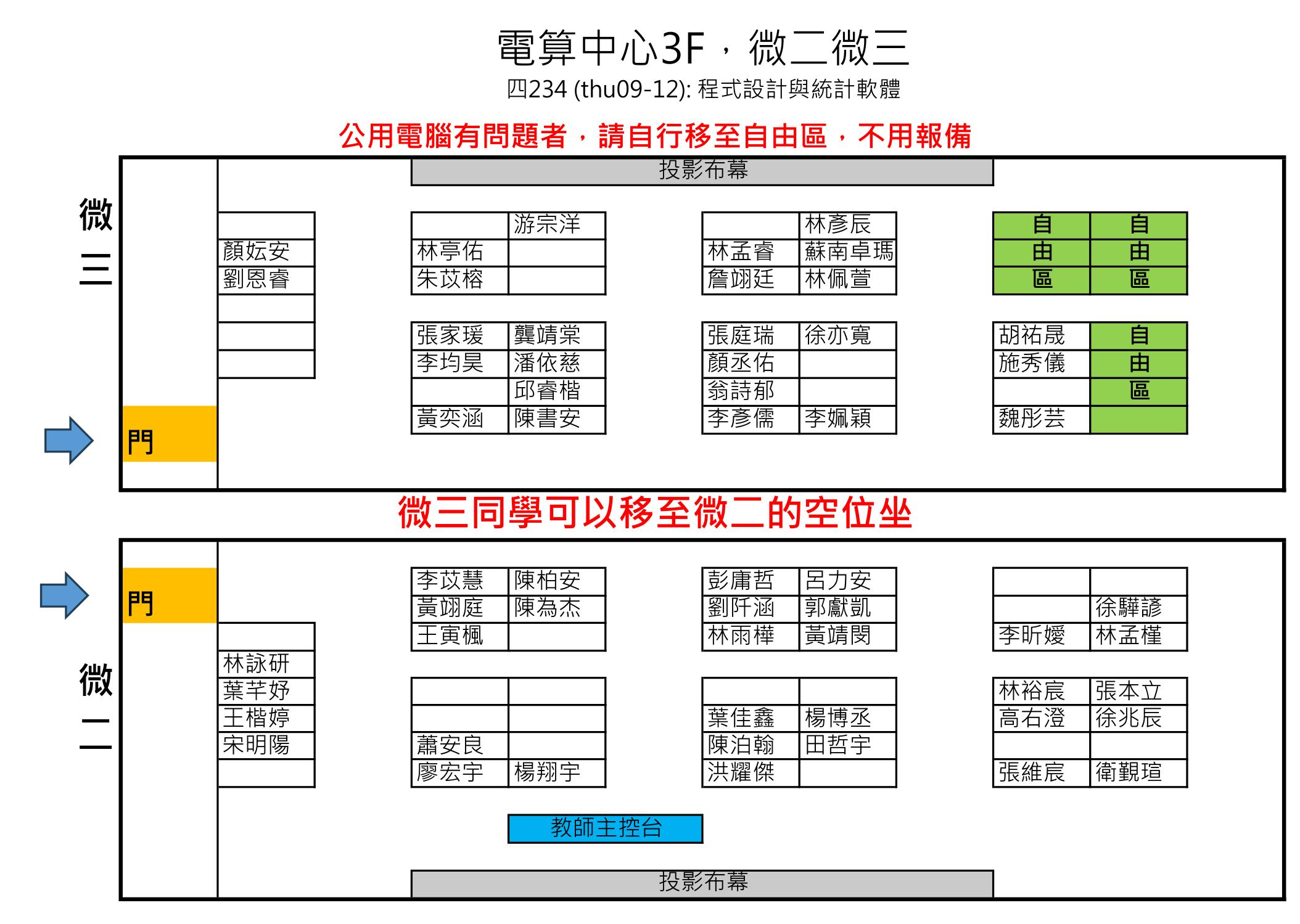 • 教室:電算中心三樓微二室 [微二微三座位配置表]